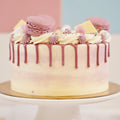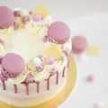 Je hebt keuze uit vanille of red velvet cake. Voor de vulling kies je bijvoorbeeld framboos, aardbei, vanille of Oreo. Daardoor sluit deze lila drip taart aan bij iedere smaakvoorkeur. De combinatie van zachte crème en luchtige cake maakt het geheel compleet.